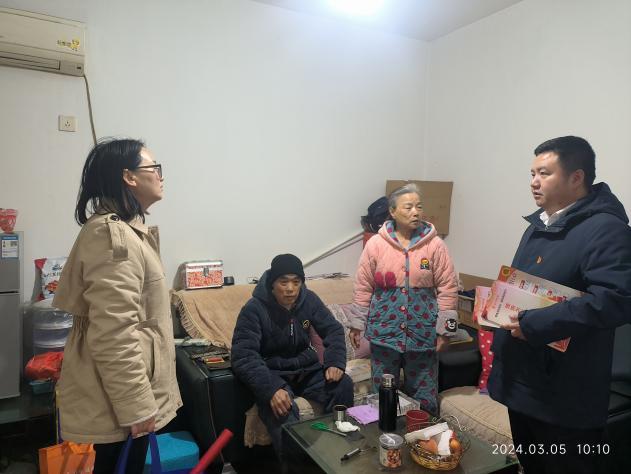 為進(jìn)一步學(xué)習雷鋒精神,3月5日上午,天心國資集團黨委組織黨員、入黨積極分子、志愿者共同開(kāi)展“奉獻、友愛(ài)、互助、進(jìn)步”學(xué)雷鋒志愿服務(wù)活動(dòng),走訪(fǎng)看望聯(lián)點(diǎn)社區困難戶(hù)、開(kāi)展消防安全和城市更新政策宣傳活動(dòng),不斷擦亮國企黨委服務(wù)基層群眾的政治“底色”。集        團黨員、志愿者一行走訪(fǎng)了湘電線(xiàn)材廠(chǎng)公房小區,慰問(wèn)了困難戶(hù)唐永軍,關(guān)心了解到他無(wú)子女、無(wú)他處住房、無(wú)收入和退休金,且身患糖尿病及多個(gè)并發(fā)癥的情況后,集團黨委與橋頭社區黨委共同商議,將該戶(hù)作為特殊困難戶(hù)進(jìn)行建檔立戶(hù),與湘電線(xiàn)材廠(chǎng)及建設、民政等區相關(guān)部門(mén)做好銜接,形成合力幫助解決其征收后的住房困難和家庭困難等問(wèn)題。